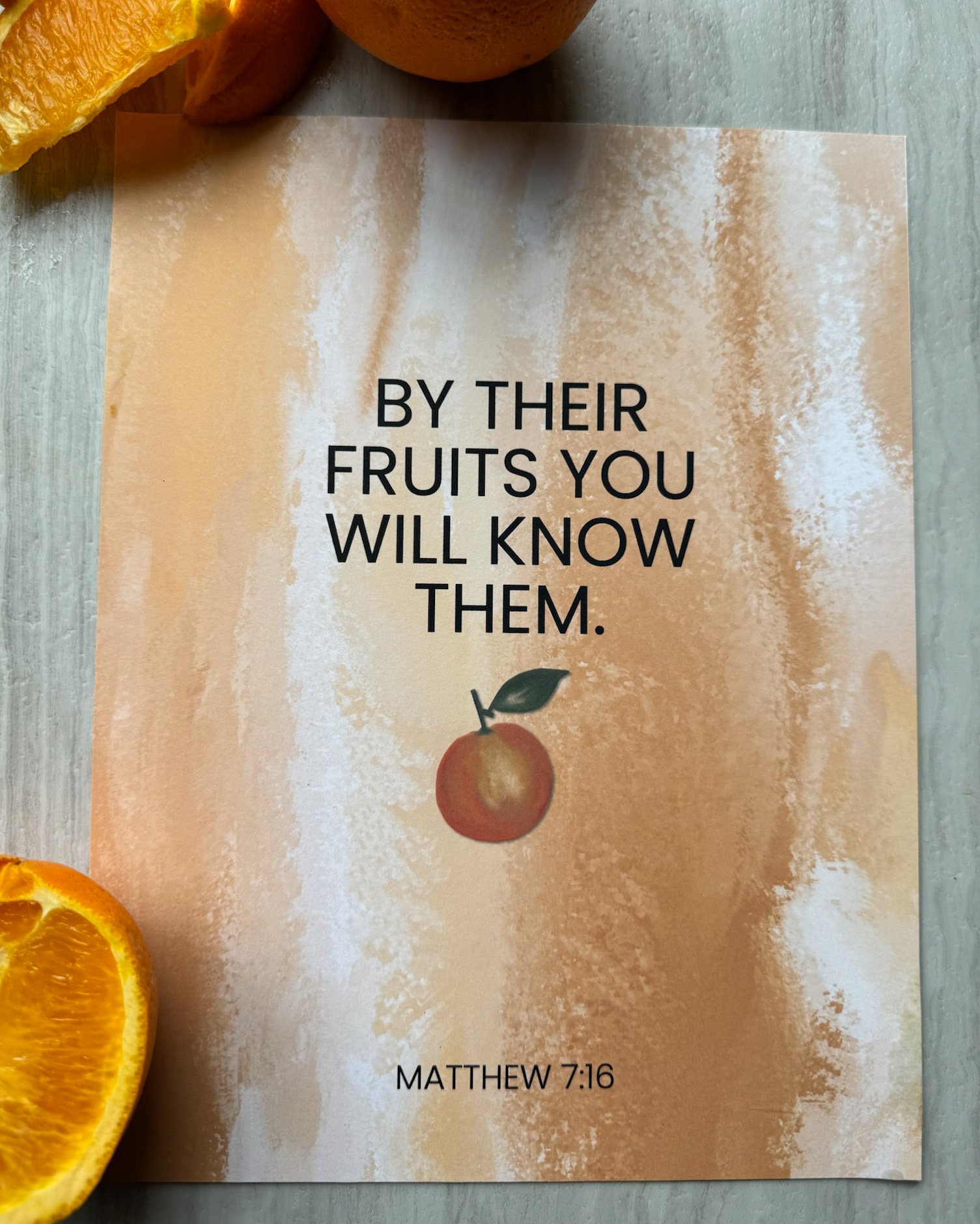 Prints › Matthew 7:16 Image 1 of 2 Image 2 of 2 Matthew 7:16 Sale Price: $7.50 Original Price: $10.00 An 8’x10’ print of our Matthew 7:16 scripture design. Add To Cart Added! An 8’x10’ print of our Matthew 7:16 scripture design. *product ships in 3-5 business days.